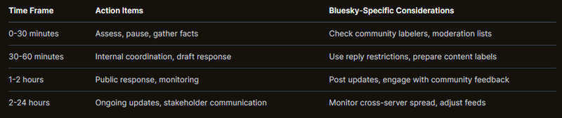 Fact-Checking Priority: Always verify information before responding publicly. Bluesky's community values accuracy and transparency, making factual errors in crisis responses particularly damaging to credibility.