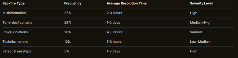 Wrong account posting, inappropriate timing, and technical errors create quick-burning crisis situations that require immediate attention. Broken links, misleading images, or content scheduled without considering current events can create unnecessary problems that escalate rapidly in Bluesky's fast-moving environment.
